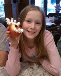 I don’t know if mom invented them or was given the tip from another parent at Presidio Hill School, our progressive elementary school where she would later become the director. In the middle of the table she set a pile of apples, little boxes of Sun-Maid raisins, and a bag of mini marshmallows. She asked me to watch the younger kids so they didn’t try to eat the toothpicks.