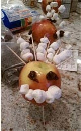 I was at the “kids’ table,” which was a card table covered with a tablecloth that perched at the edge of the dining room near the bottom of the stairs to the second floor. I played tag and hide-and-seek with my cousins and the children of grown-ups I didn’t know. When it came time to sit down, mom gave us something to do so the grown-ups could get on with their important chatting and drinking uninterrupted: Apple Turkeys.