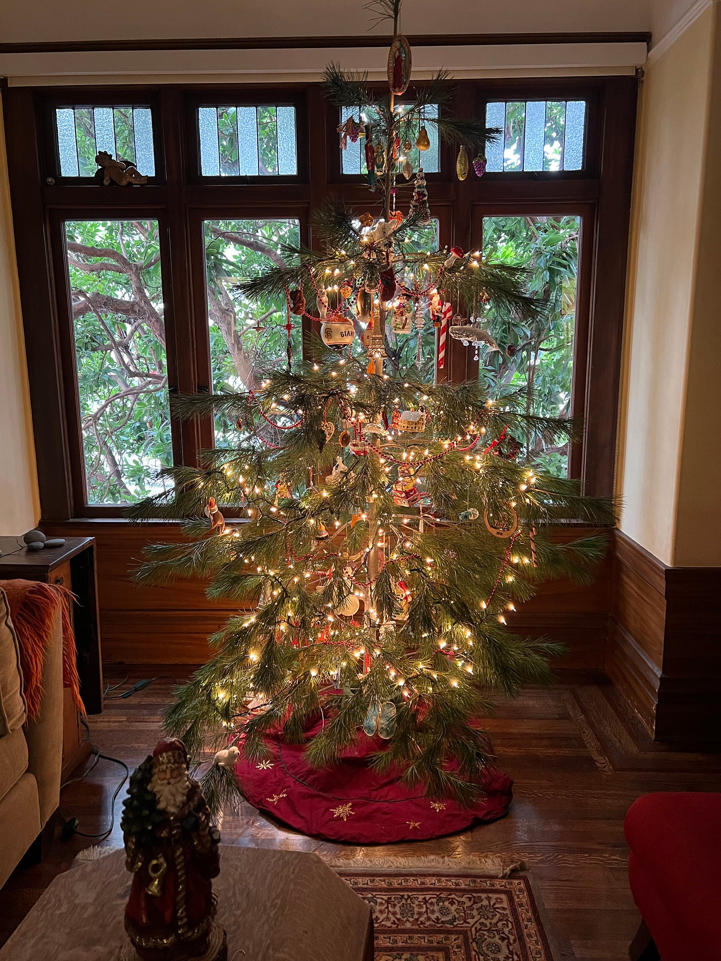 Every year my mountain tree is different, has plenty of room to display my collection of ornaments, and I’m grateful for it and my family. Merry Christmas to all.