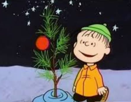 My Christmas trees are not the full, fluffy factory-farmed evergreens from lots that grace greeting cards, hotel lobbies, and homes in Hallmark movies. My Christmas trees are sparse and spindly grown-up versions of Linus’ imperfect but lovable tree in a Charlie Brown Christmas.